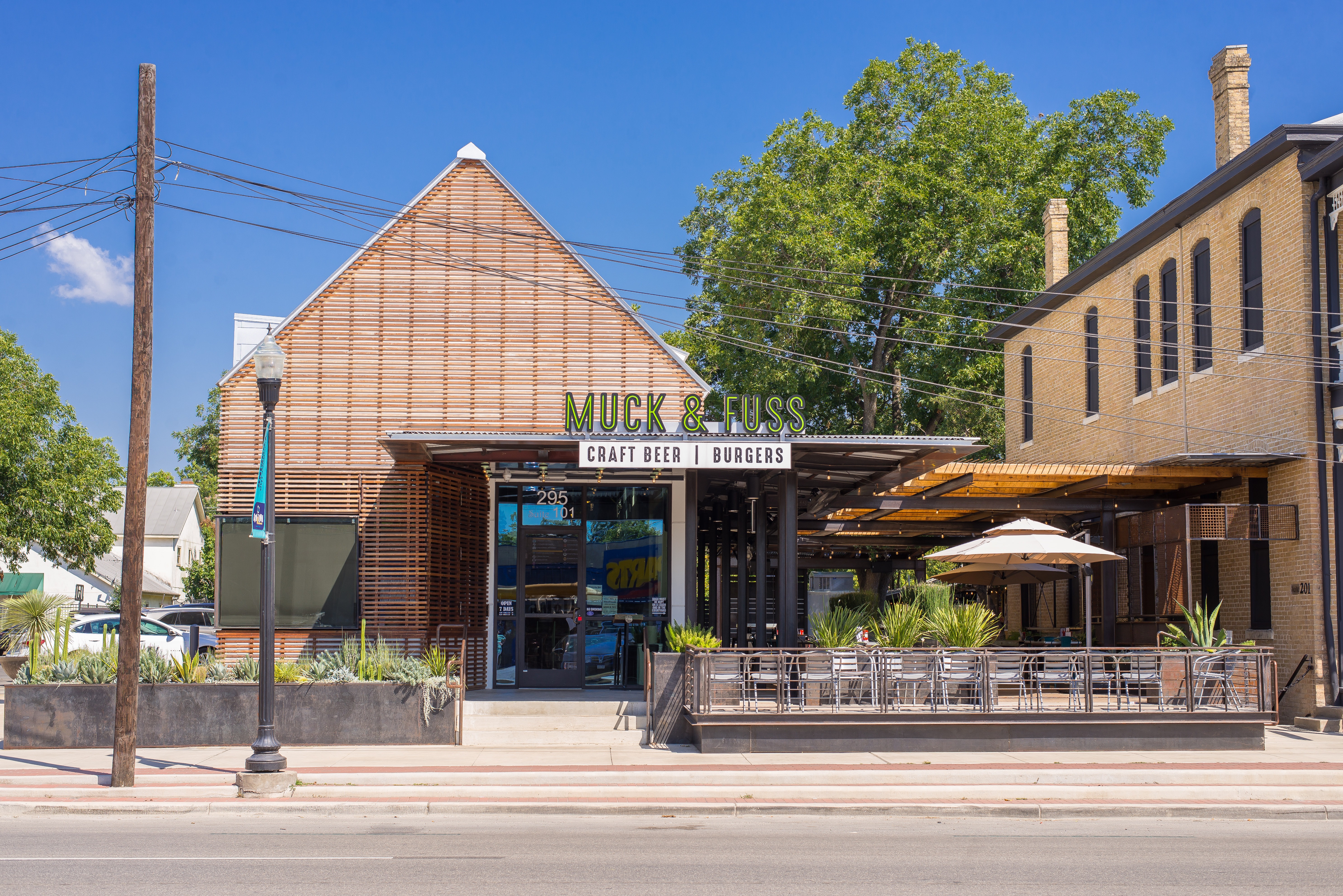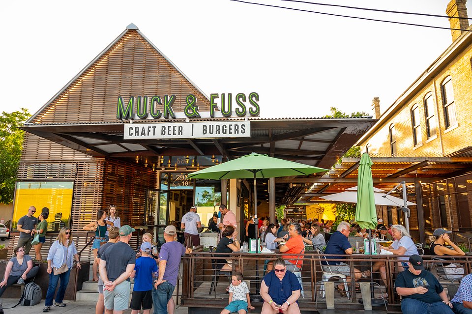 Muck & Fuss is a locally owned dining destination in the heart of downtown New Braunfels, featuring chef-inspired burgers, inventive fare, and a carefully curated craft-beer lineup. With 38 rotating draft beers, live music, and a lively Biergarten, Muck & Fuss delivers a community-centered experience for both locals and visitors.